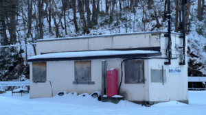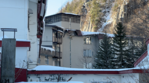 こちらが天人峡グランドホテル 窓ガラスも破られかなりボロボロだ